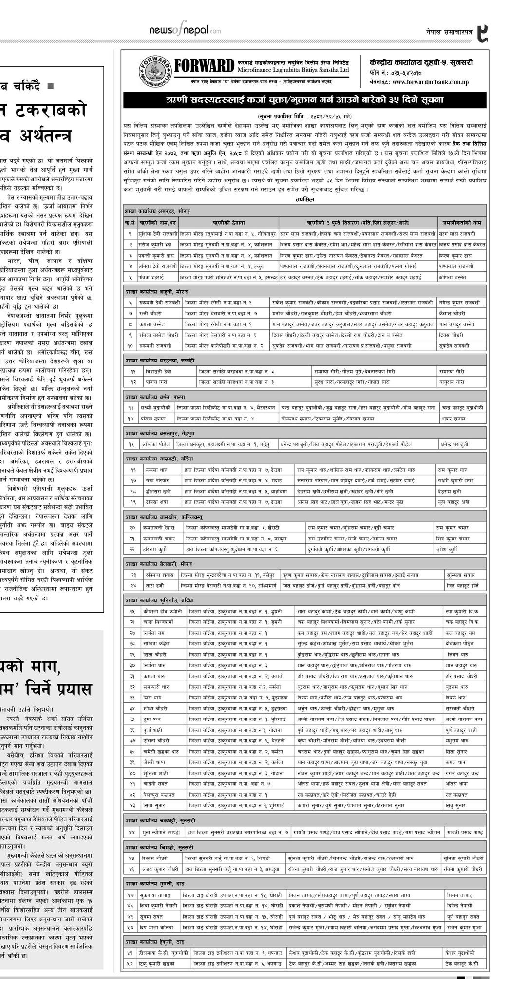 Defaulter Notice Published Nepal Samacharpatra 2 Poush 2081